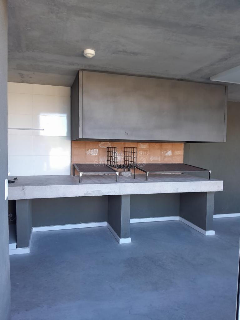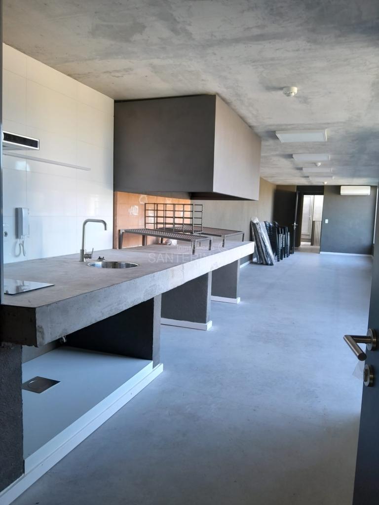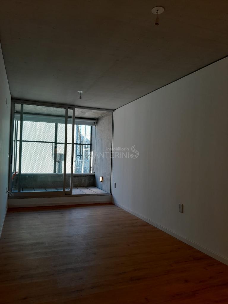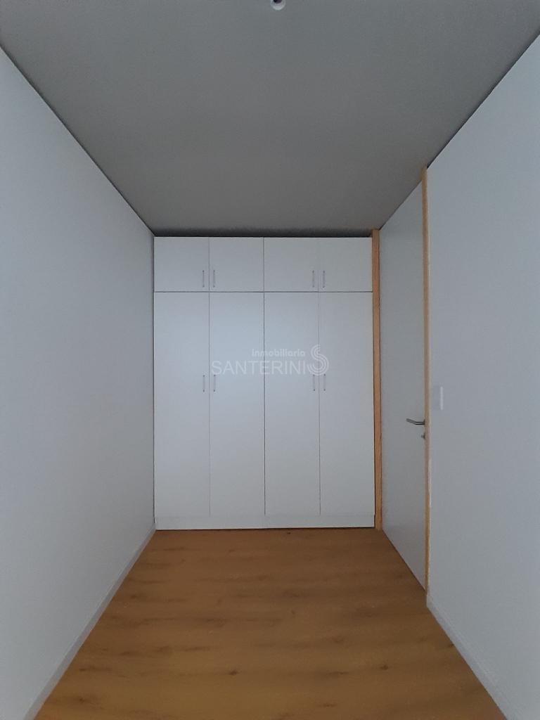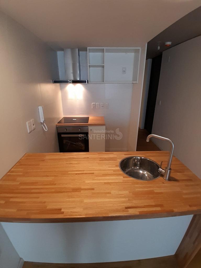 Living comedor con cocina integrada y placares.